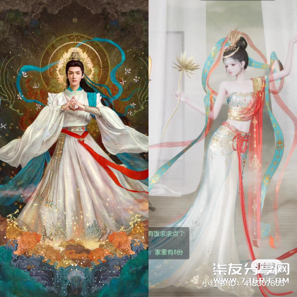 《长相思》中的服化道,尤其是服装,女装中增加了许多羽毛、珠绣和刺绣的元素,搭配上非常灵动典雅的配饰,细节满满。 而《长月烬明》影视剧,则一改以往古装剧中的“丧葬风”,来源于敦煌壁画的灵感和服装配色让人过饱眼瘾。