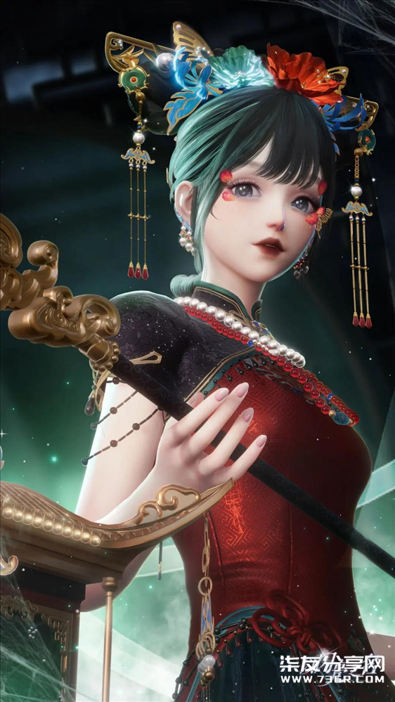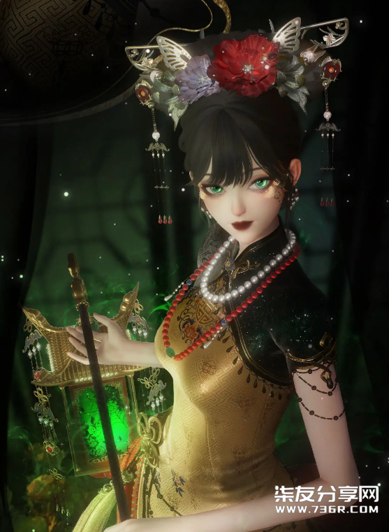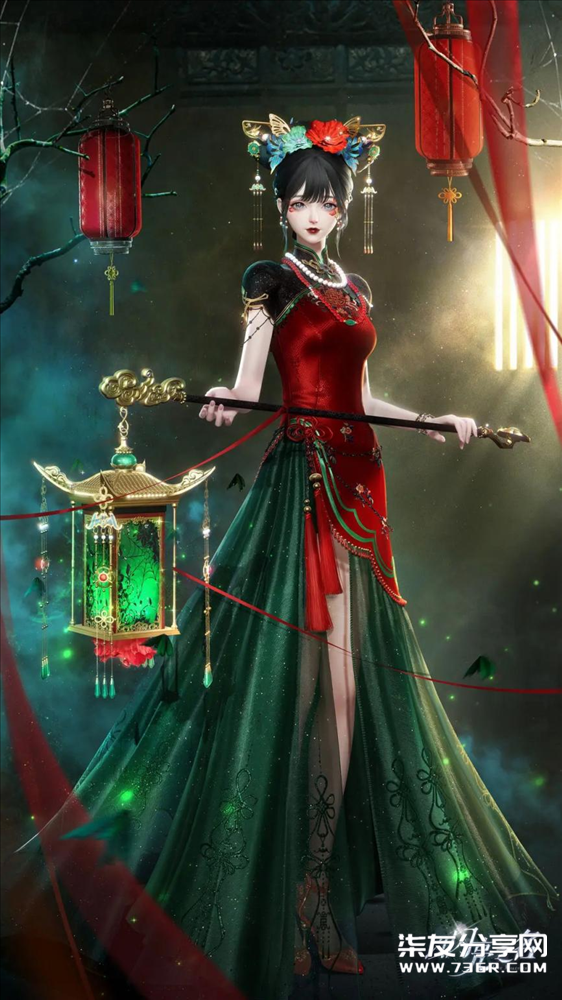 这套痴梦无诉的发饰部分与旗头有着异曲同工之妙,但是相对于传统的旗头来说,更添了一份轻盈的感觉,有种蝴蝶在花丛中肆意飞舞之美。 而裙身则是采用旗袍的改良版,上半部分更多地是用绸缎暗纹效果,看起来质感十足。裙摆的部分没有使用大家熟悉的开叉设计,而是融合半透纱质,添加刺绣图案和细闪设计,让整体更有设计感,旋转之间,似有万千萤火虫翩翩起舞,氛围感拉满! 让古典与新中式碰撞混搭,将明媚张扬与幽暗神秘的融合达到了极致。