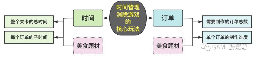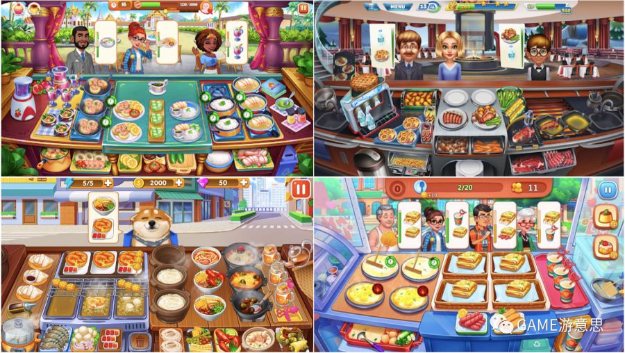 大家应该都玩过Cooking或者也能看懂规则|Cooking Frenzy 【做饭题材】指的是游戏题材是扮演大厨给顾客做饭,并凭借秀色可餐、种类繁多美食吸引玩家。 【时间管理】的意思是游戏目标和挑战为:在规定的时间内达成指定的过关条件即为通关成功,否则通关失败,玩家有“时间压力”。(普通三消关卡可以理解没有“时间压力”) 【Match游戏】指的是游戏中顾客会提出各种指定菜品订单,玩家需要使用原料通过加工的方式制作成出对应的菜品订单给顾客,进行“配对Match”,顾客给钱离开,玩家继续做其他的订单