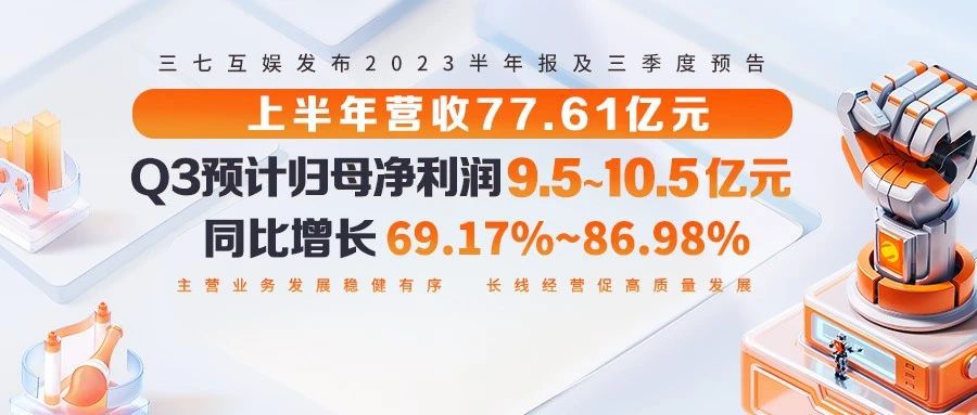 8月30日,三七互娱发布2023年半年度报告及前三季度业绩预告。公司预计今年第三季度归属于上市公司股东的净利润为9.5亿元至10.5亿元,同比增长69.17%至86.98%,前三季度预计归属于上市公司股东的净利润为22亿元至23亿元。今年1-6月,公司实现营业收入77.61亿元,其中,海外营收30.27亿元;归属于上市公司股东的净利润12.26亿元。 同时,三七互娱公布了2023年半年度利润分配预案。公司拟按分配比例不变的方式,向全体股东每10股派送现金股利4.5元(含税),不派送红股,不以资本公积转增股本,预计此次现金分红总额约为9.98亿元,占当期归属于上市公司股东的净利润比例高达81.4%,此前公司近三个会计年度累积现金分红金额已近40亿元。 产品矩阵持续丰富,长线运营能力提升 随着行业竞争逐步加剧,企业新游发行的节奏和长线运营的能力缺一不可,前者可以持续拔高营收的上限,而后者则能保证长期营收的下限。今年上半年,三七互娱推出了《凡人修仙传:人界篇》《霸业》《最后的原始人》等诸多新品,而长周期产品《Puzzles & Survival》《叫我大掌柜》《斗罗大陆:魂师对决》则仍保持旺盛的产品生命力和潜力。 其中,MMORPG手游《凡人修仙传:人界篇》作为上半年的重磅产品,三七互娱发挥发行与运营优势,在宣传和品牌化发行上分周期、分层次地把游戏特色、内容亮点通过组合拳进行传播。游戏也不负众望,上线后便接连打破公司内部的多项记录,并在MMO赛道成功突围,赢得众多玩家喜爱。而自研的三国题材SLG手游《霸业》和代理的史前文明题材卡牌手游《最后的原始人》的上线,则进一步扩展了公司多元产品的矩阵。 长线运营的能力,则一直是三七互娱的优势所在。近年来,三七互娱也根据行业变化和顺应技术发展,革新自身的运营体系,为玩家提供细致全面的长线服务。通过将大数据、AI引入运营,联动知名IP用于拉新和回流以及运营活动的持续微创新等方式,延长游戏的生命周期。 报告显示,包括《Puzzles & Survival》《叫我大掌柜》《斗罗大陆:魂师对决》《绝世仙王》《云上城之歌》《小小蚁国》《空之要塞:启航》等多款在运营产品仍保持旺盛的产品生命力和潜力,为公司业务发展贡献稳定的业绩。 全球化成绩稳步向前,稳居出海第一梯队 根据《2023年1-6月中国游戏产业报告》显示,2023年上半年我国自研游戏海外市场实际销售收入同比下降8.72%。 正是在这大背景下,三七互娱的海外业务仍保持稳健发展态势,则更凸显其海外业务团队的能力和稳定。现阶段,三七互娱在全球市场已形成以MMORPG、SLG、卡牌、模拟经营为基石的产品矩阵。在多家第三方机构的月度出海营收统计榜单中,三七互娱已稳居中国出海游戏厂商第一梯队,旗下《Puzzles & Survival》《云上城之歌》《绝世仙王(데블M)》《Ant Legion》等多款出海标杆产品表现稳健。 以三七互娱出海的标杆产品为例,《Puzzles & Survival》自上线至今年6月底累计流水约80亿元,成为SLG融合玩法游戏成功出圈的经典案例,游戏也成为中国出海游戏的头部产品。而《云上城之歌》则通过差异化的玩法以及针对性的推广打开了日本和韩国市场,成为为数不多的在这两个国家均有亮眼成绩的中国国产游戏。 在游戏出海的同时,三七互娱也积极推动文化出海,通过将旗下产品的玩法题材及推广素材与中华优秀传统文化深度融合,以贴近不同区域、不同国家、不同群体受众的传播方式,去推动中国故事的全球化表达。 研运一体持续升级,AI赋能提质增效 近年来,三七互娱持续优化产品来源方式,以优质内容为战略方向,通过资金扶持、业务支撑、投后赋能等多维度方式为众多拥有良好产品口碑的研发厂商赋能,包括与易娱网络、星合互娱、延趣网络在内的多家优质研发商深度绑定,结合代理、定制等方式丰富公司优质产品供给,深化多元化产品布局。
